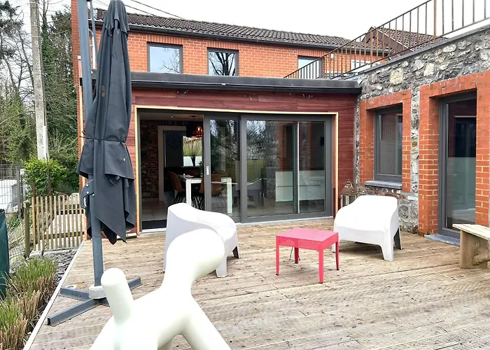 Gli ospiti possono usufruire di un angolo cottura attrezzato, di una zona pranzo. Sono presenti anche un bollitore elettrico, una lavastoviglie e utensili da cucina per preparare i tuoi pasti. Gli ospiti possono cenare al ristorante C'est Moi Qui Cuisine, situato a a 300 m dalla struttura. L'aeroporto di Charleroi-Bruxelles Sud è raggiungibile in 48 minuti d'auto da questa villa con 2 camere da letto.